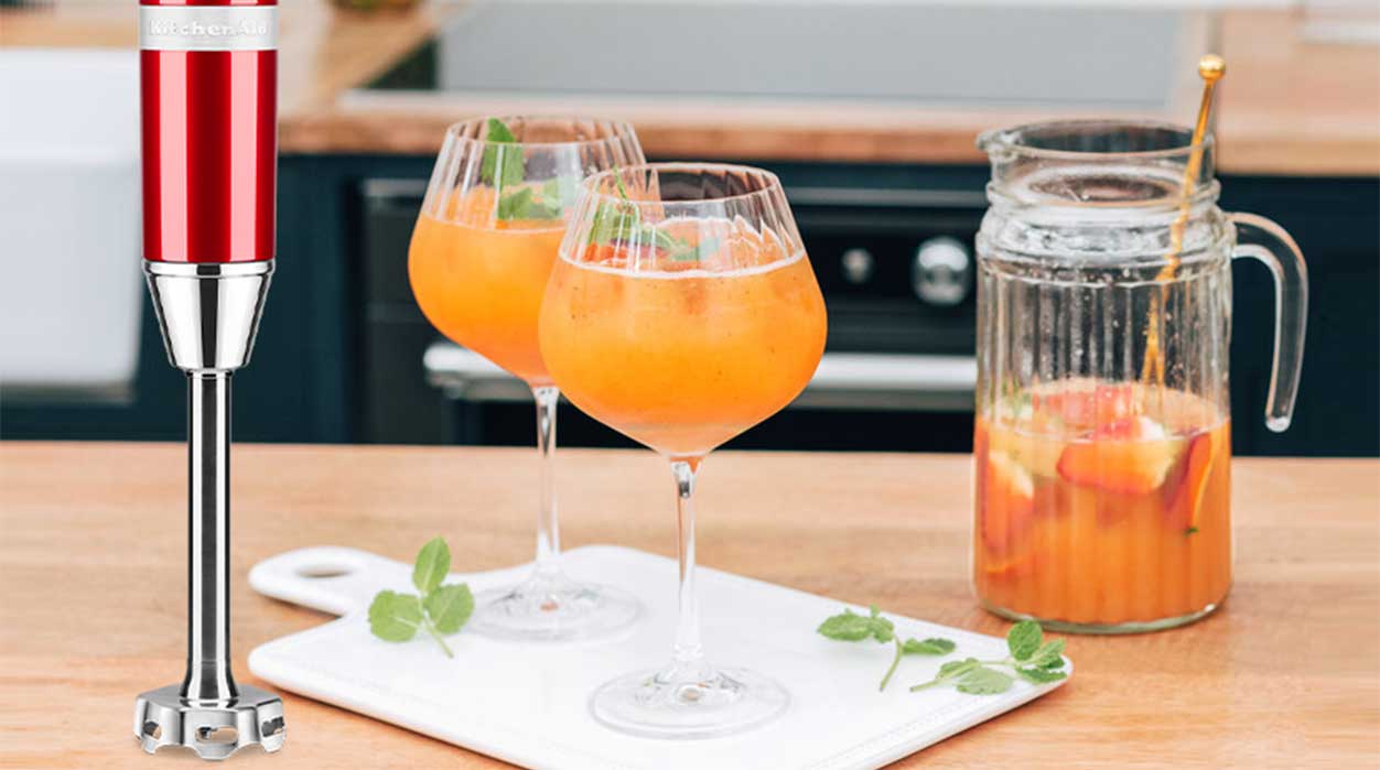 Adja hozzá a narancslevet, és keverje össze a vezeték nélküli botmixerrel, amíg sima, krémes állagot nem kap.