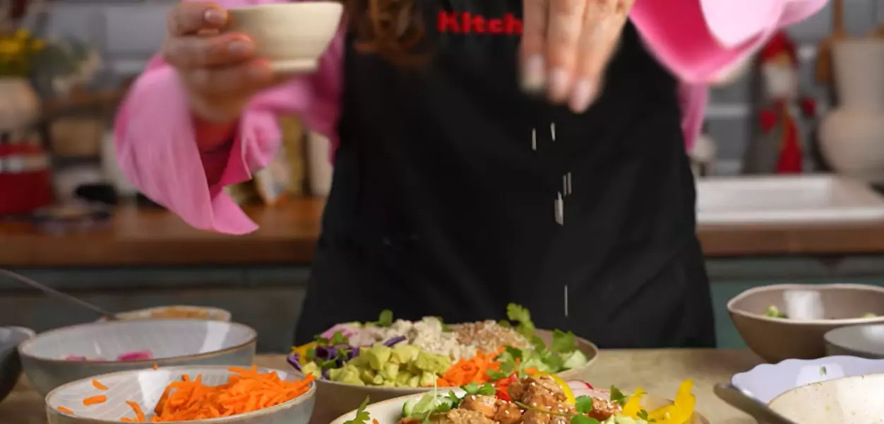 A Nosalty videójában KitchenAid multifunkciós gépek felhasználásával megmutatja, hogyan állíthat össze házilag ilyen fantasztikusan sokszínű, tápláló és kiegyensúlyozott buddha bowlt, azaz buddha-tálat. A látszat ellenére egyszerű receptről van szó, amit a zöldségek sokfélesége tesz igazán változatossá. Ezeket érdemes különféle méretűre és formájúra vágni, ehhez pedig jól jön, ha van otthon egy multifunkciós gép, amivel gyorsan és könnyen tudjuk aprítani a zöldségeket.