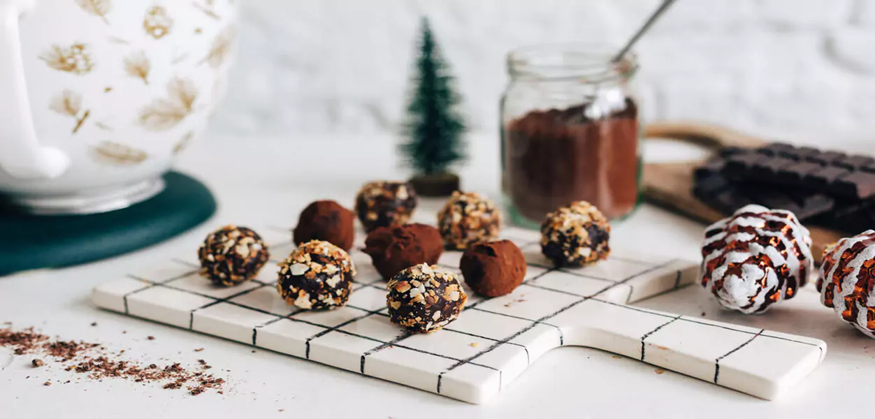 • Egy kanál (vagy fagyiadagoló) segítségével merjen ki a kihűlt trüffel keverékből egy kis mennyiséget, és formázzon belőle kb. 2,5 cm átmérőjű golyókat. Könnyebb a formázás, ha vékony gumikesztyűt viselünk.