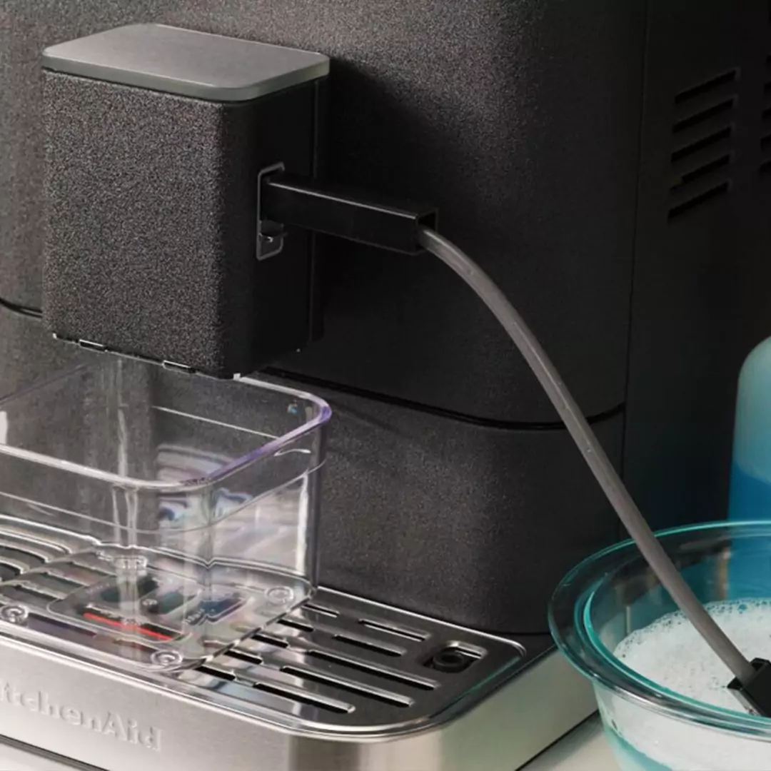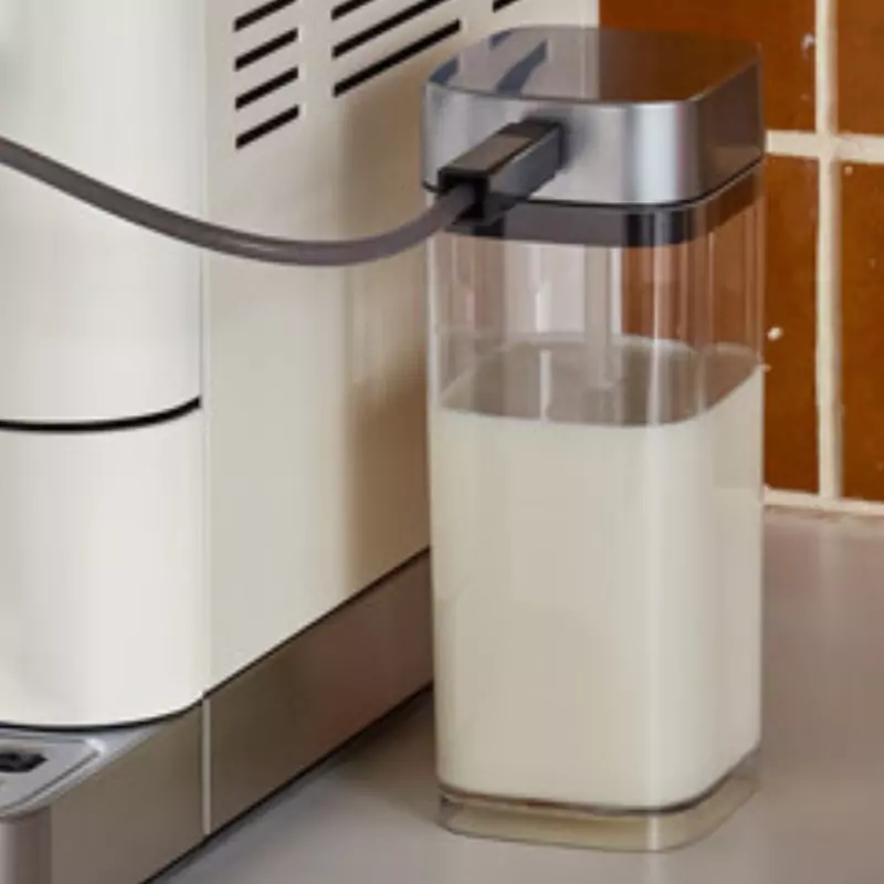 A készülék 790 ml-es tejtartállyal rendelkezik. A tartály hűtőszekrénybe rakható, így a tej hideg és friss marad.