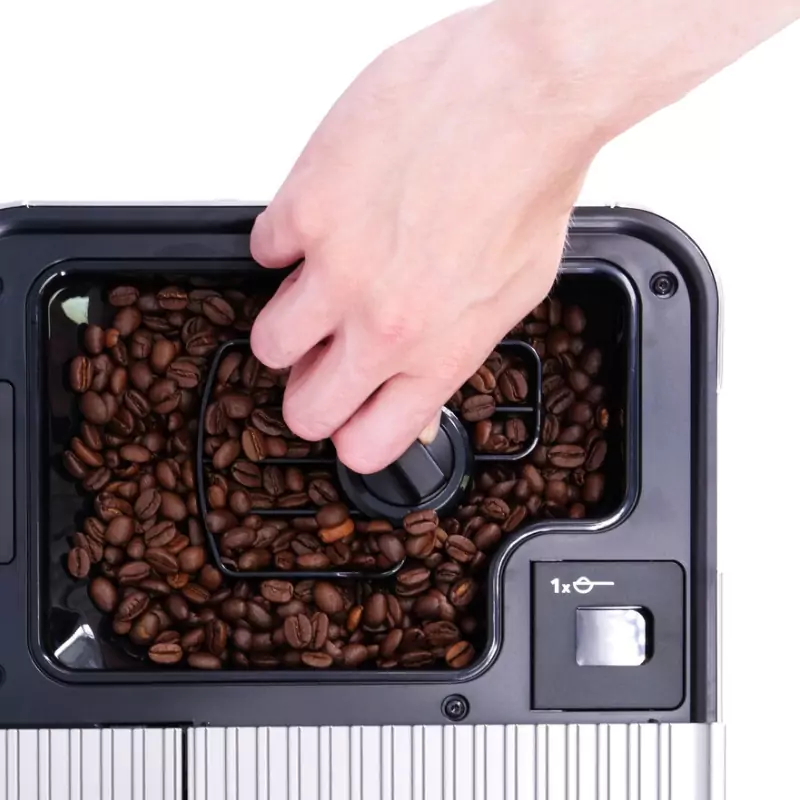 Egyetlen csavarás és emelés – és máris kiürítheti, cserélheti vagy újratöltheti a kávétartályt friss szemekkel. A beépített daráló automatikusan adagolja a megfelelő mennyiséget és állagot minden csésze elkészítéséhez. Az Automata tisztítás gondoskodik róla, hogy a daráló két adag között teljesen kitisztuljon, így semmi sem állhat a tiszta, harmonikus ízélmény útjába.