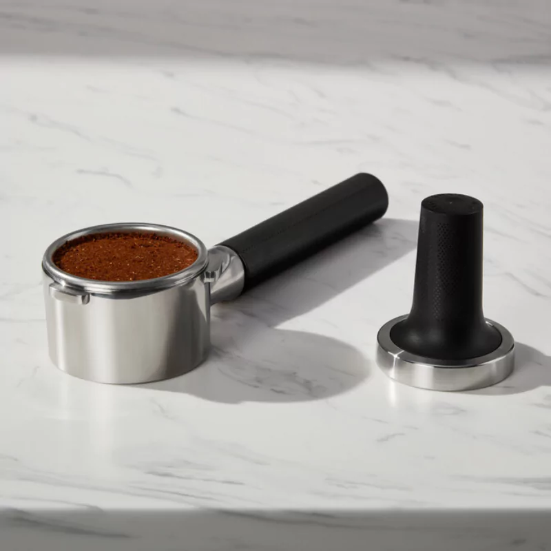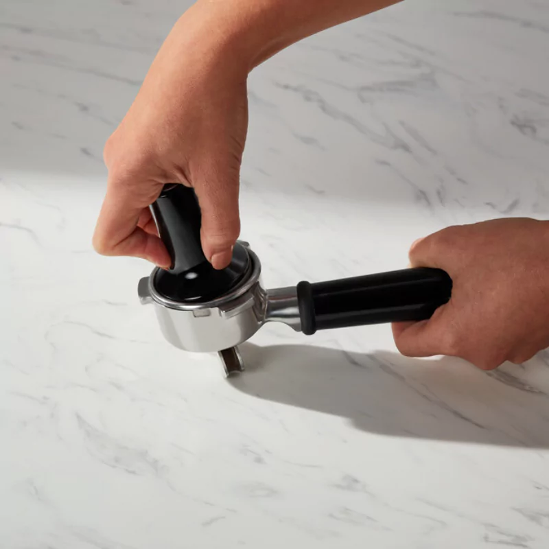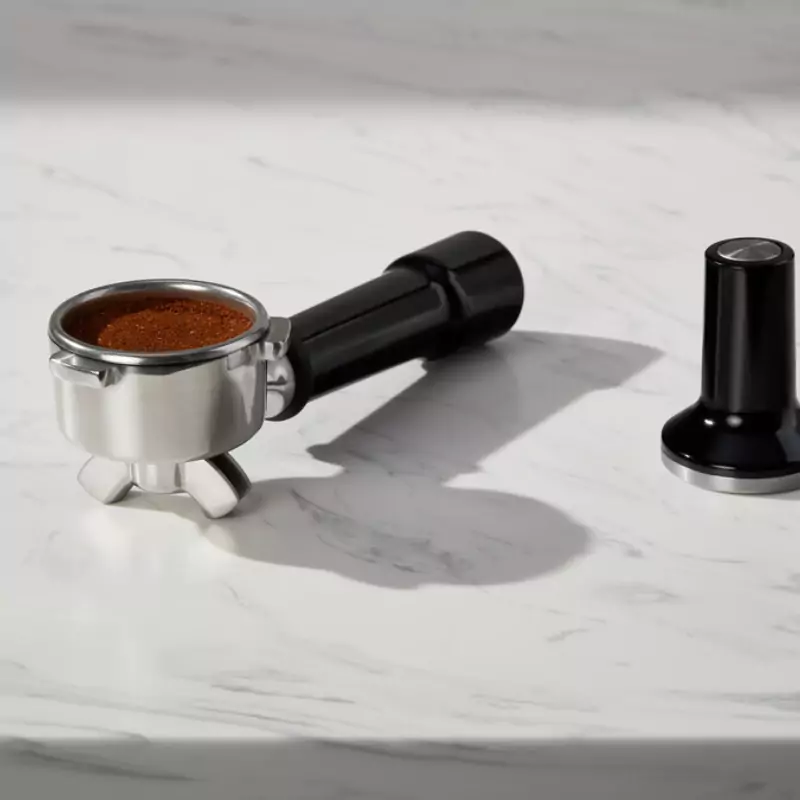 A szabványméretű, 58 mm-es portafilter pontosan úgy készült, ahogy azt a színvonalas kávézók világában elvárják. A süllyesztett kifolyók stabil, lapos felületet biztosítanak, hogy tömörítés közben ne billegjen, és minden mozdulat magabiztos legyen. Ez a kis részlet óriási különbséget jelent az ízekben: egyenletes aroma, gazdag crema, hibátlan eszpresszó minden egyes csészében.