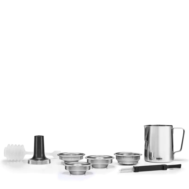 - Dupla falú kosár Előállítja a szükséges nyomást, hogy bármilyen eszpresszó tetején könnyedén aranyszínű crema képződjön, akár előre őrölt kávéból is. Ezek a túlnyomást biztosító, duplafalú szűrőkosarak egyszerű, egyenletes és konzisztens eszpresszó kinyerést tesznek lehetővé. Használat után azonnal öblítse ki a szűrőkosarat forró víz alatt, majd ecsettel és enyhe mosószerrel távolítsa el az összes maradékot.