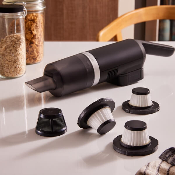 Elegáns, kompakt kialakítás és határtalan rugalmasság! Egyetlen könnyedén cserélhető és tölthető akkumulátor biztosítja a porszívó tápellátását, akárcsak a többi KitchenAid Go kollekció termékét. Nincs több gubanc, csak kényelmesen elérhető tisztaság és rend a konyhapultján.
