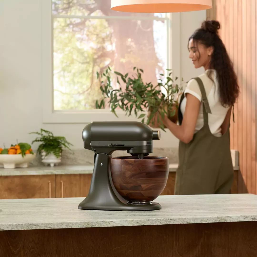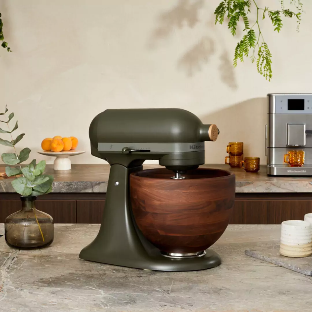 E sorozat legújabb tagja a KitchenAid Evergreen billenőfejes robotgép, amely mélyzöld árnyalatával és valódi diófa keverőtáljával frissességet teremt az otthonában. Akár egy lágy fuvallat, úgy hozza el otthonába a természet lényegét, felidézve egy fákkal teli erdő gazdagságát.