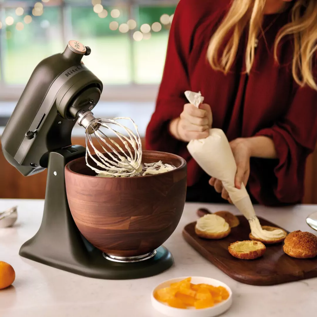 Az Evergreen robotgéphez valódi diófából készült, 4,7 literes keverőtál tartozik. Minden tál egy-egy egyedi mestermű, a fa természetesen eltérő erezetmintázata tükrözi az Önben rejlő egyedi alkotót.