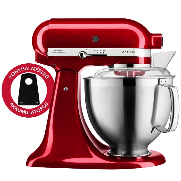 A minden részletében felsőkategóriás kivitelű, műanyag gombok helyett króm kapcsolókkal felszerelt Artisan prémium robotgép rozsdamentes tartozékai mosogatógépben tisztíthatók és az alap KitchenAid színek mellett több különleges egyedi színváltozatban is választható, pl.: pálmazöld, piherózsaszín vagy a kyoto glow.