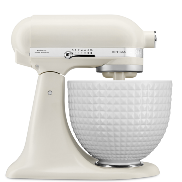 Új Artisan robotgép porcelánfehér színben, egyedi fehér szegecses 4,7 literes kerámia tállal. A mára ikonikussá vált formavilág most az aktuális design trendekhez tökéletesen illeszkedő letisztult összeállításban jelenik meg. Az eredeti bolygóműves mozgással rendelkező készülék az esztétikum mellett a hatékonyságában sem ismer kompromisszumot!