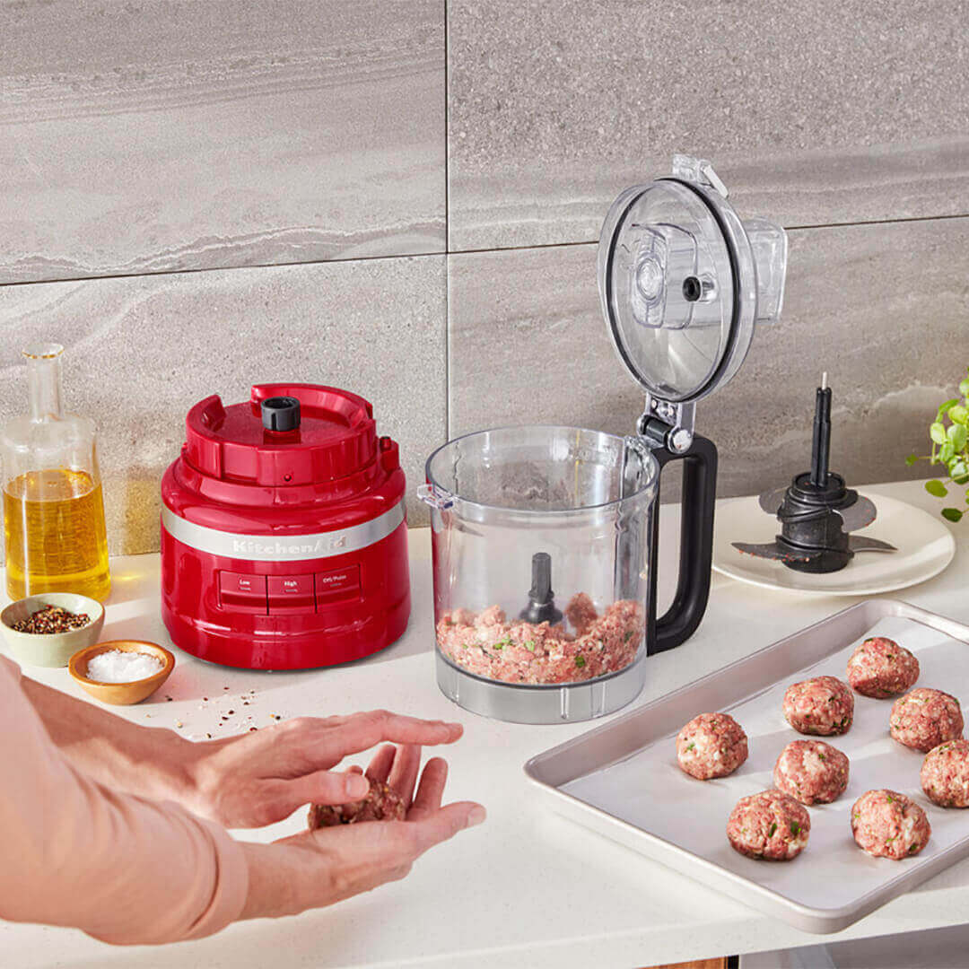Bár nem ez a legnagyobb testvér a KitchenAid multifunkciós gépek családjában, tele van olyan tartozékokkal, melyek bőven túlmutatnak az egyszerű szeletelésen vagy aprításon. Apríthat vele fűszernövényeket, szeletelhet paradicsomot, darálhat csokoládét, keverhet benne tésztaszószt, pürésíthet tápláló bébiételt. Bármi is az elképzelés, a multifunkciós géppel megvalósíthatja!