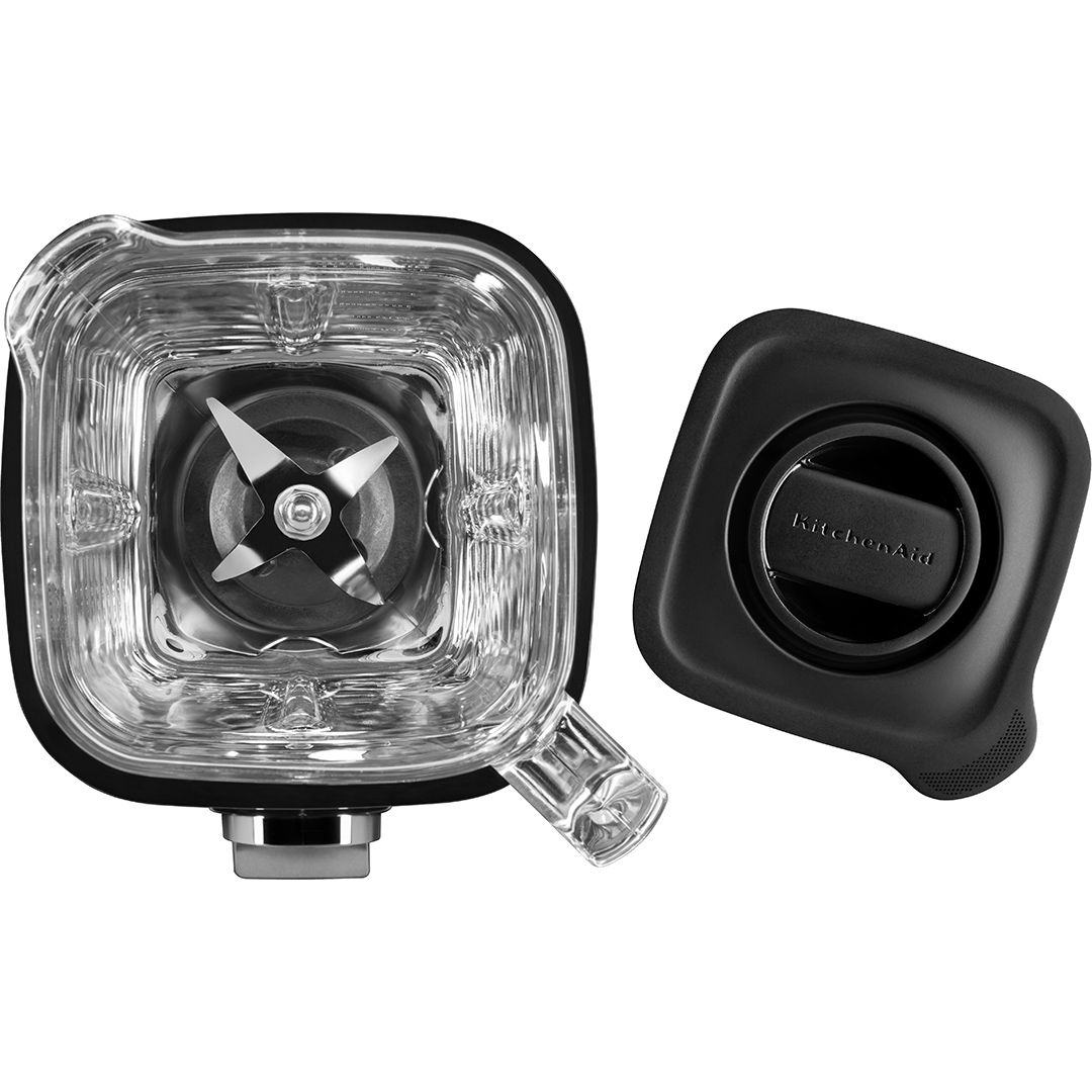 A teljesítmény és a turmixolás optimalizálásához élezve és pontosan beállított szöggel. A 3 mm vastag edzett rozsdamentes acél keverőkés turmixolásnál 4 különböző szöget tesz lehetővé. Mosogatógépben mosható. - 1,4 literes üvegkancsó szintjelölésekkel (5KSB2048JGA) és belső bordázattal, amely növeli a kancsó belsejében kialakuló örvényt. Mosogatógépben mosható.