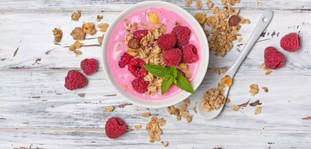 A turmixok nem csak kortyolgatásra valók. Keverje össze a gyümölcsöket, a tejet, a joghurtot és a juharszirupot egészen krémesre és istenire. Ezután pohár helyett tálba szervírozza.
