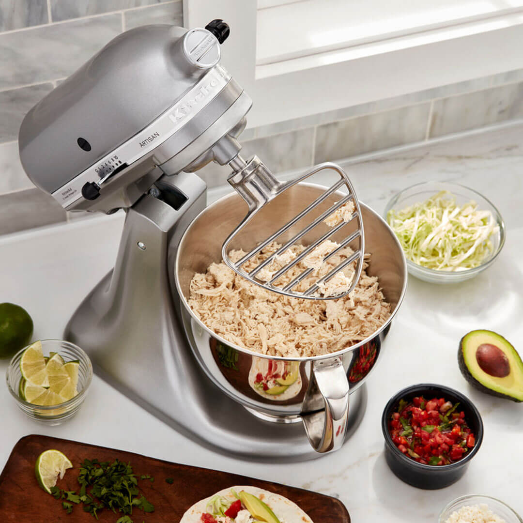 Prémium rozsdamentes acél tésztakeverő tésztakaparóval KitchenAid 4,3 és 4,8 literes billenőfejes robotgépekhez.